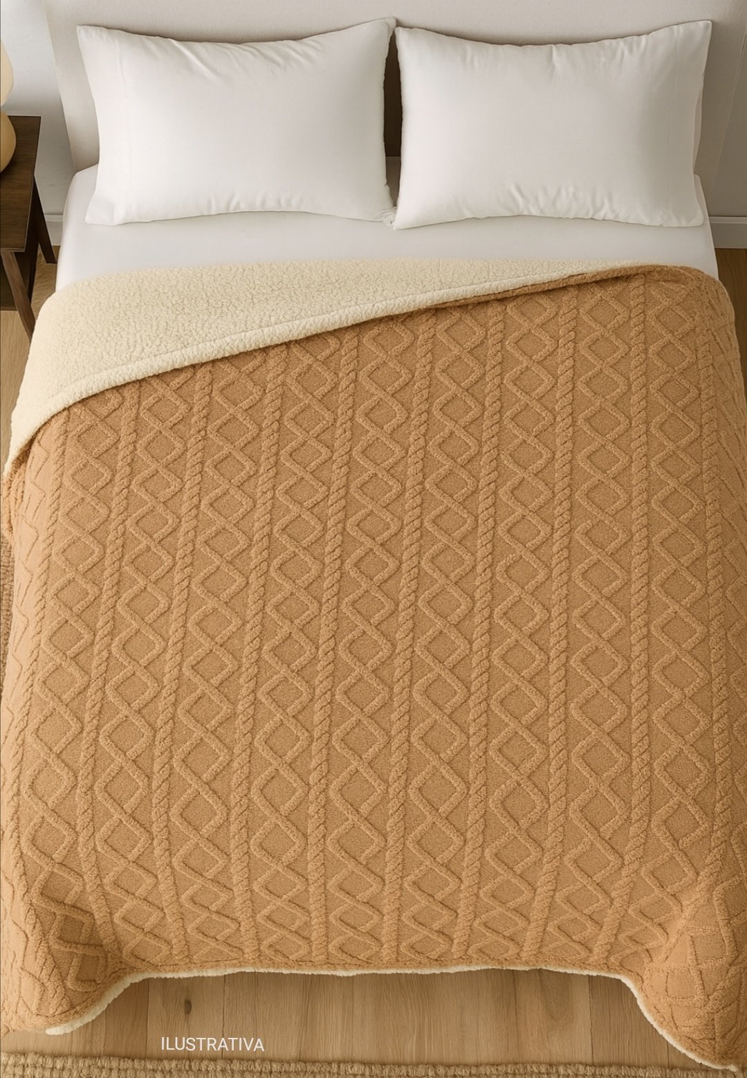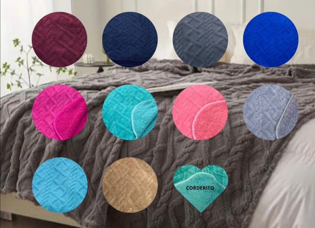 Manta de dos plazas, con textura en relieve. Liviana y de abrigo. Compras unitarias sujetas a stock