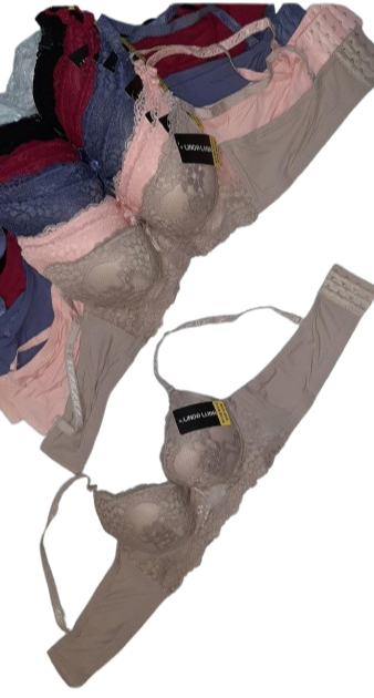 sostén armado con encaje, cuatro broches.